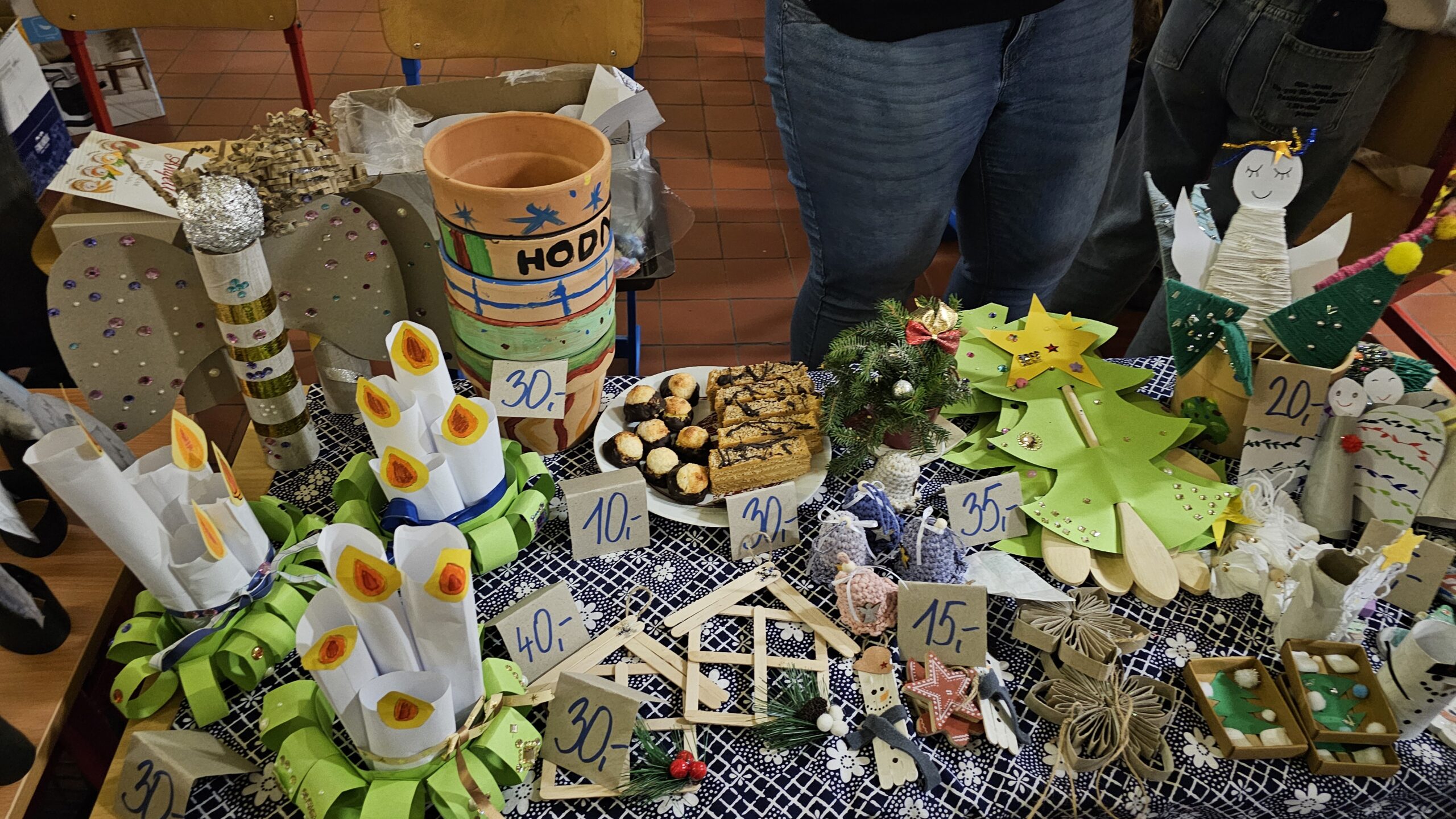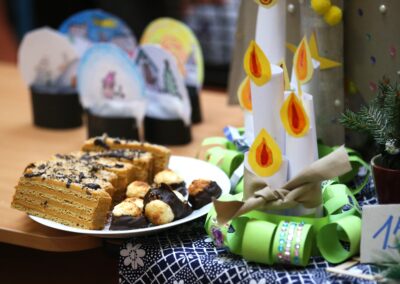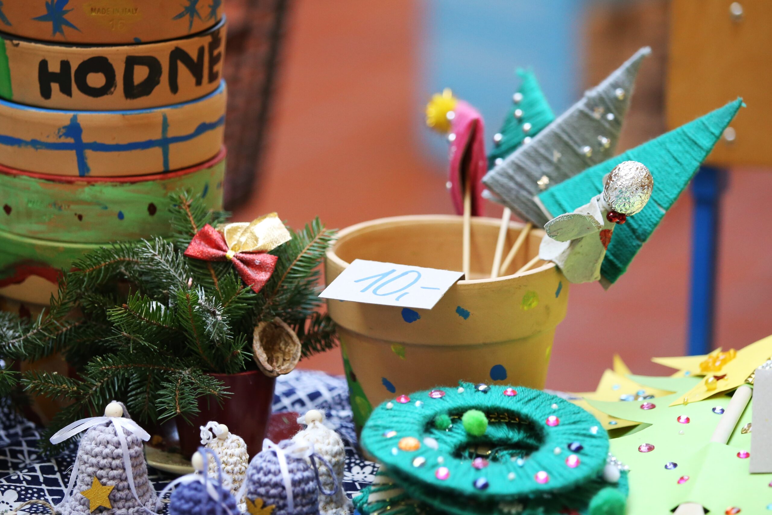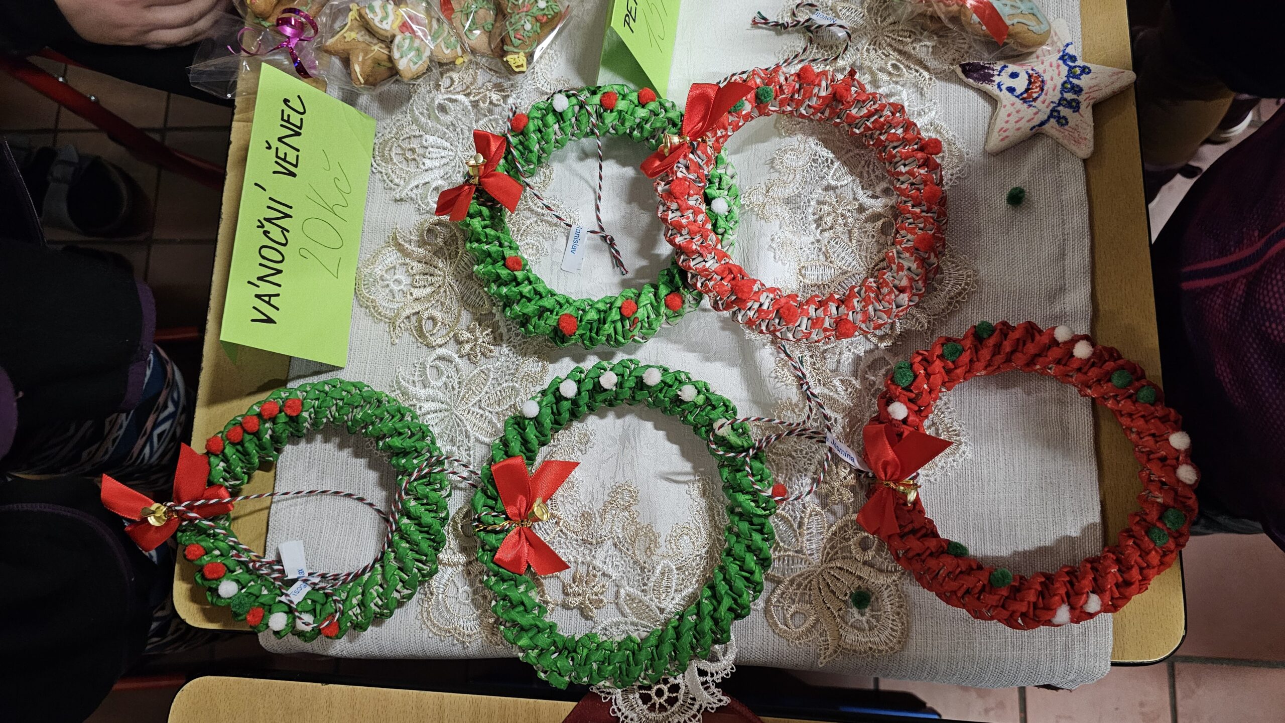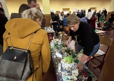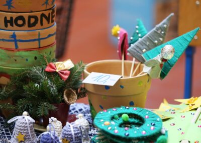 Na jarmarku nechyběly oblíbené vánoční dekorace – adventní věnce, svícny, cukroví, vánoční hvězdy, závěsné ozdoby, přáníčka, perníčky i drobná bižuterie.
